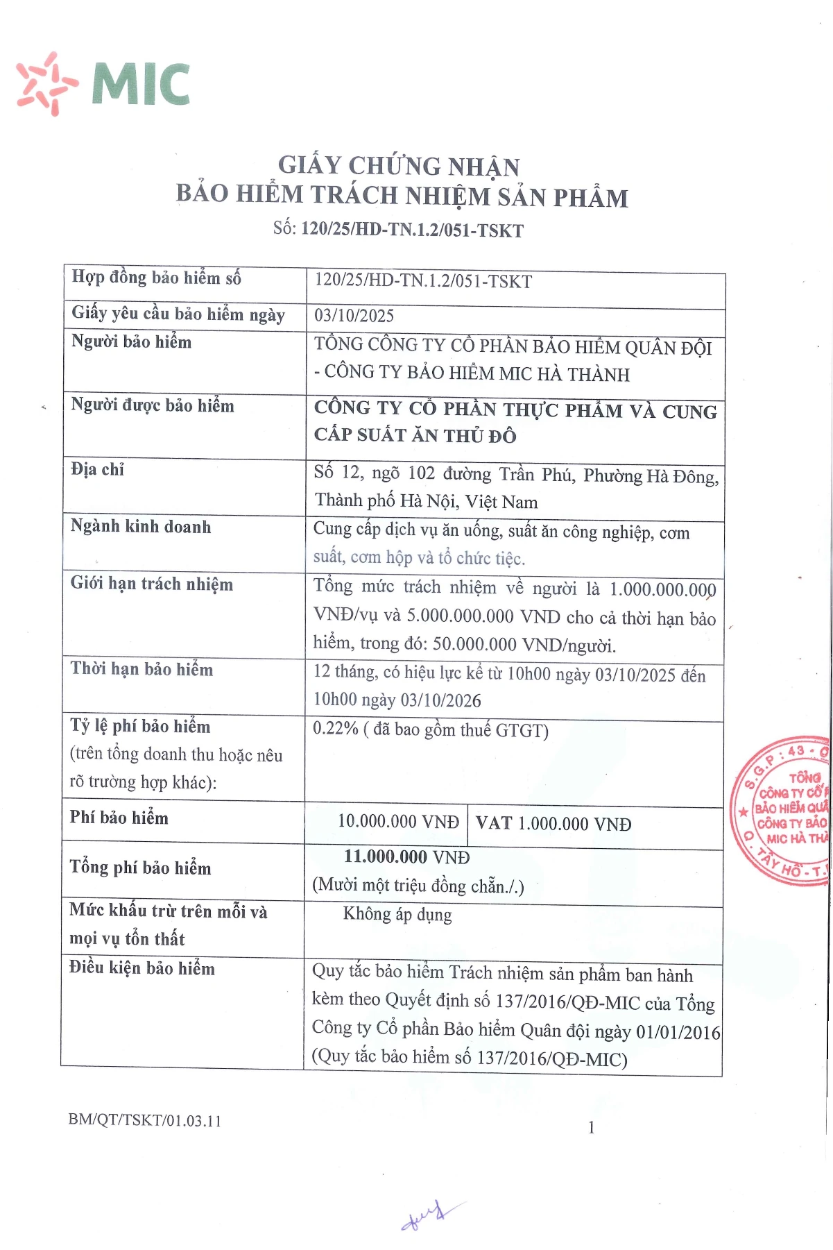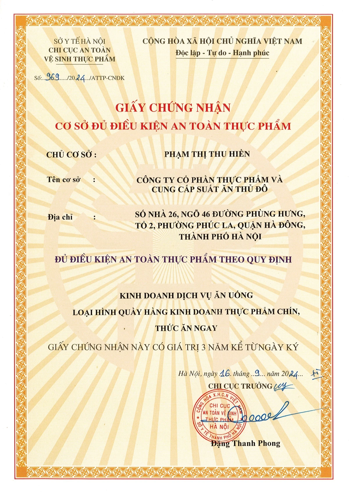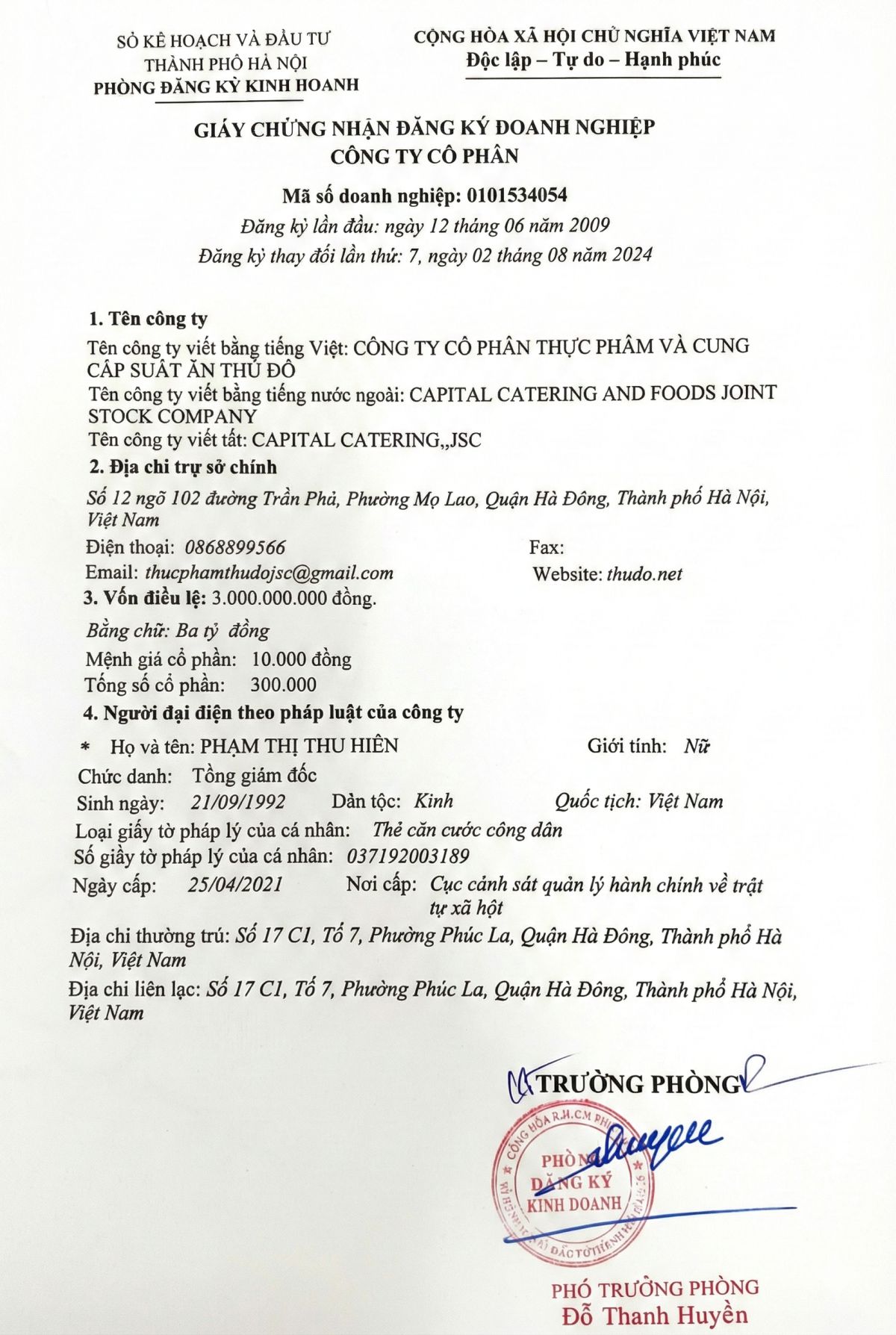 Công ty Cổ phần thực phẩm và Cung cấp suất ăn Thủ Đô