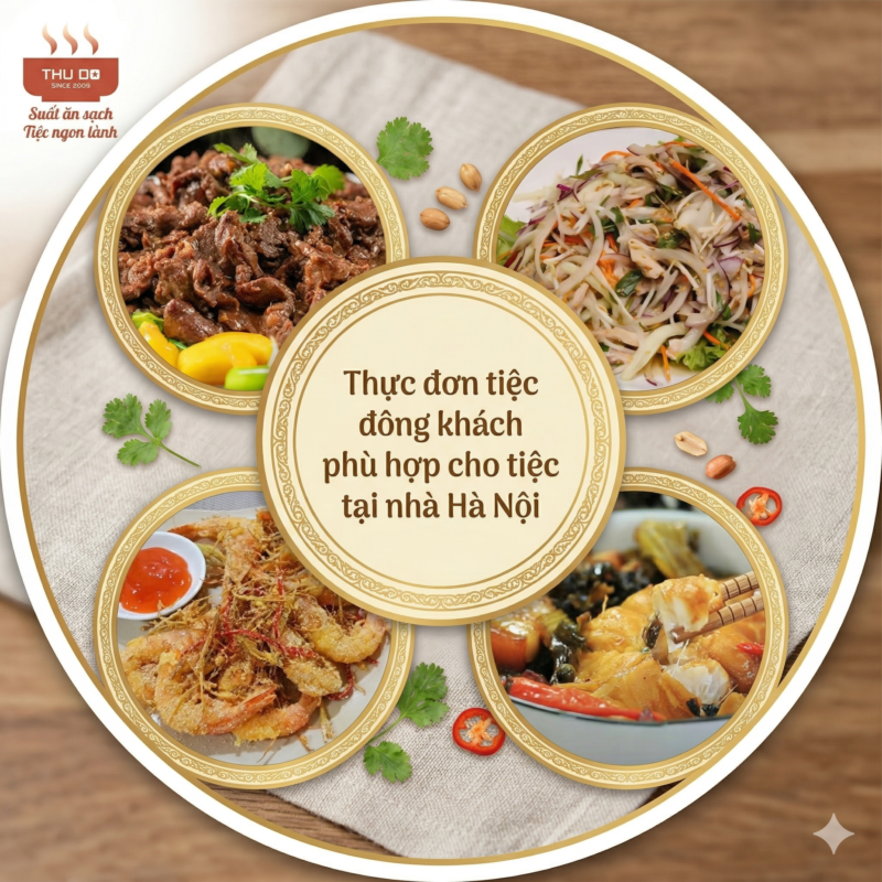 Thực đơn tiệc đông khách với 10 món trên đây được chúng tôi chọn lọc từ những món ăn quen thuộc, được nhiều gia đình Hà Nội tin dùng. Đặc biệt, món cá trắm đen om dưa đóng vai trò “món tủ” – đậm đà, hao cơm, phù hợp với số đông.