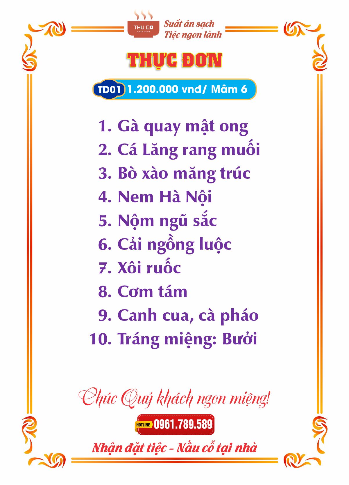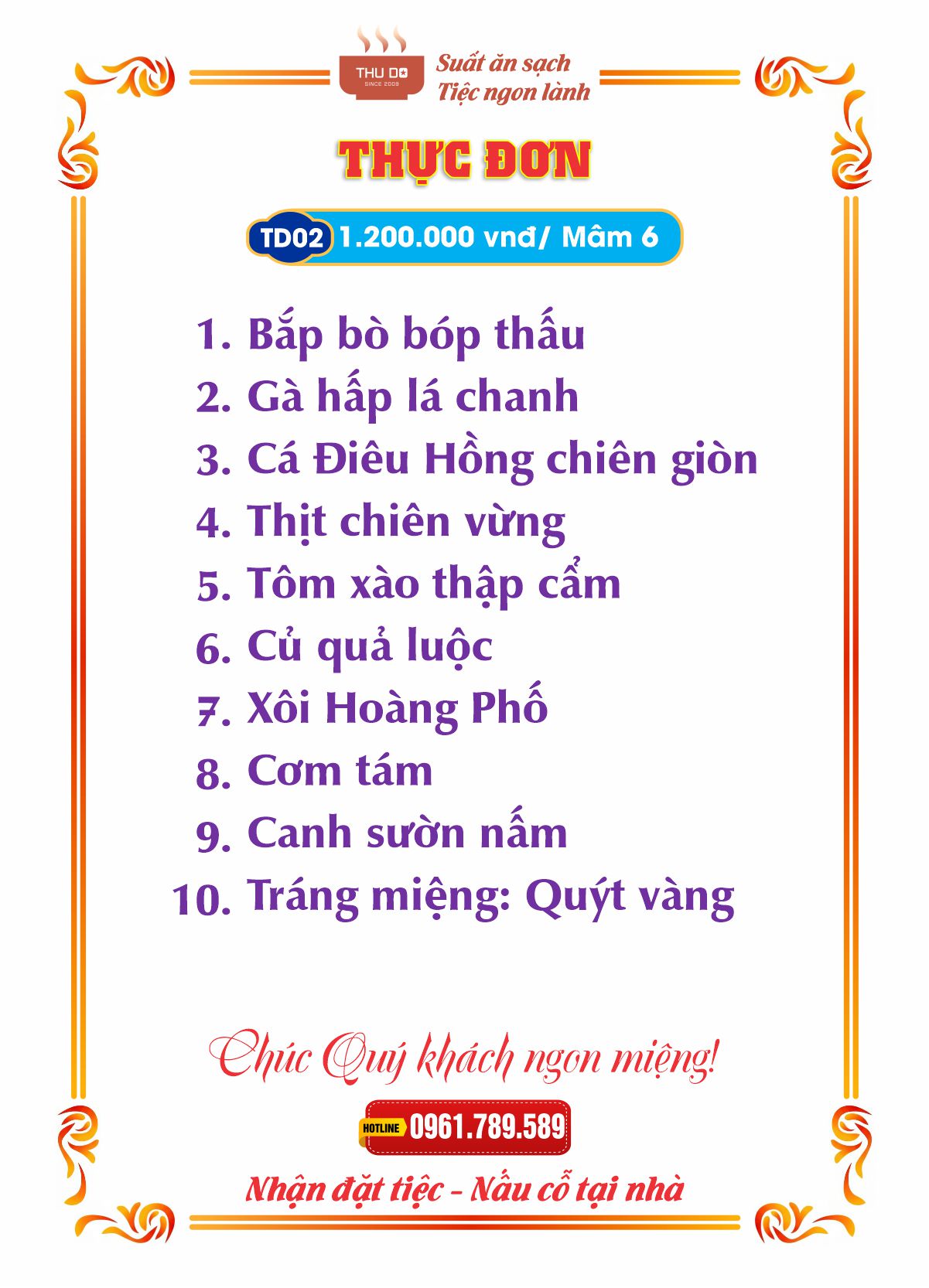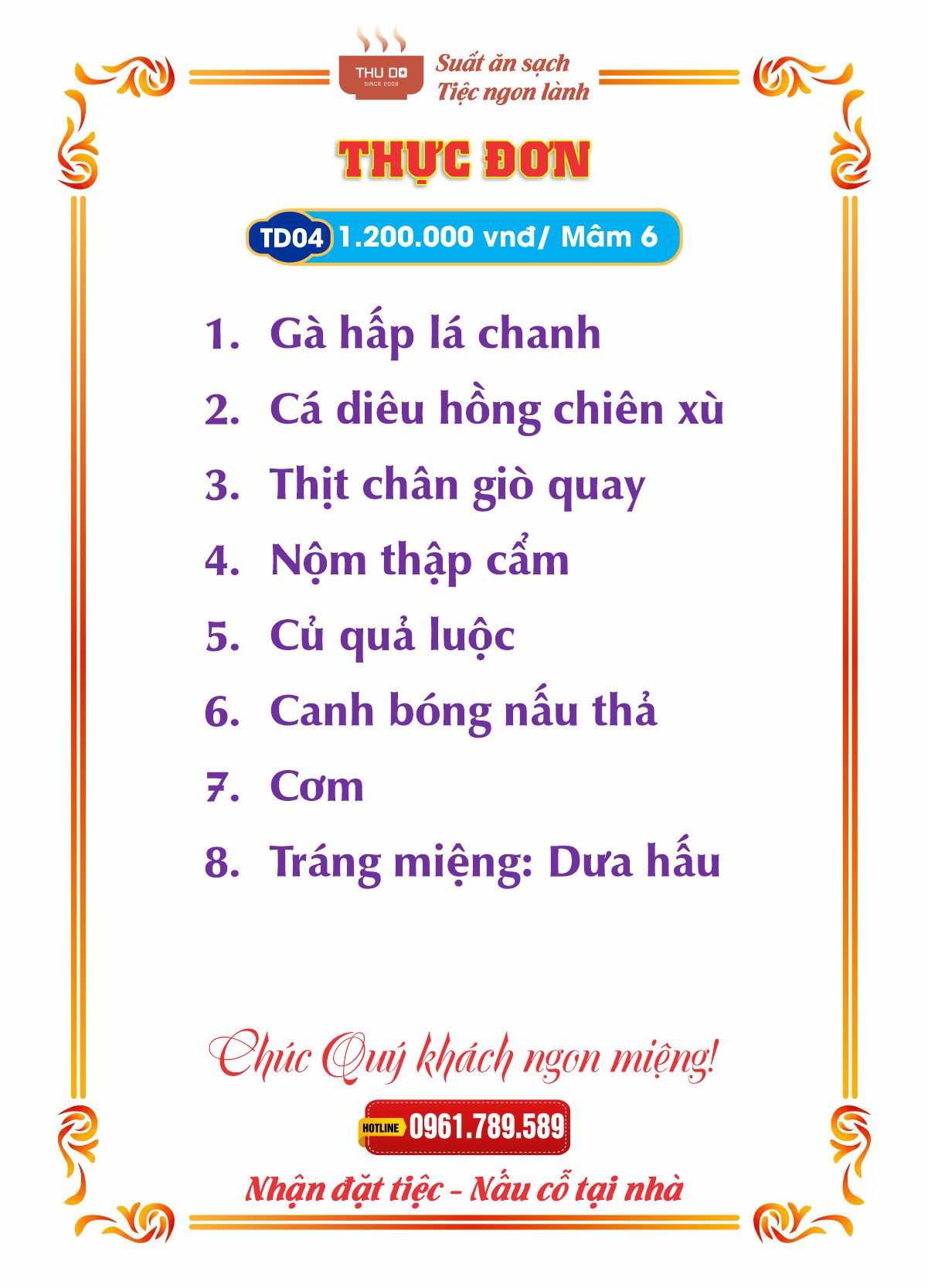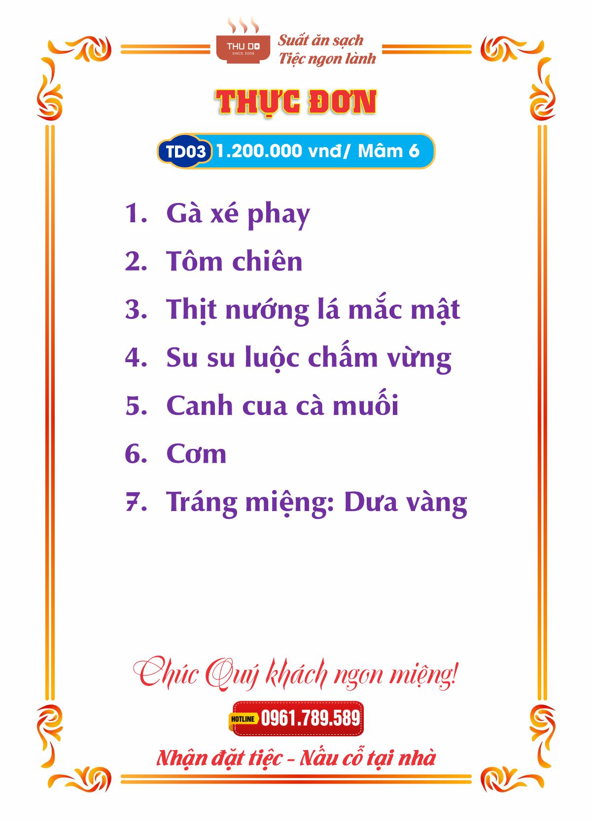 THỰC ĐƠN 1.200.000 vnđ / Mâm 6