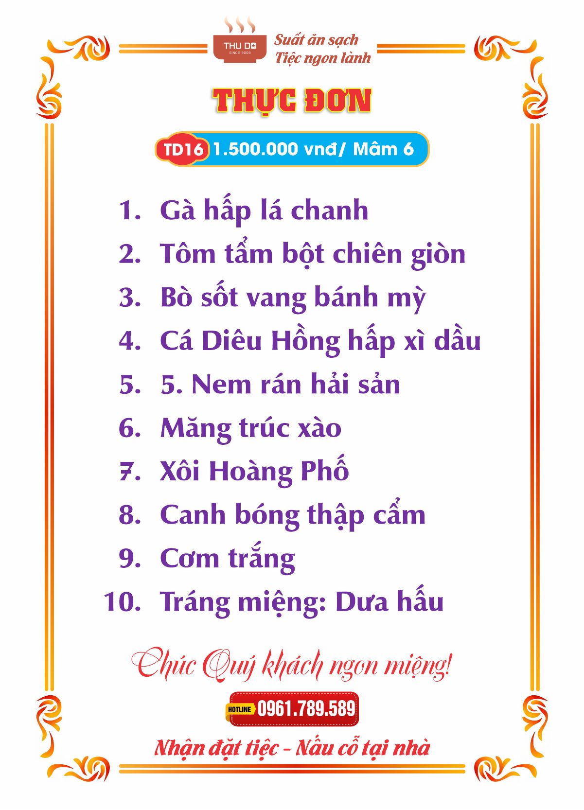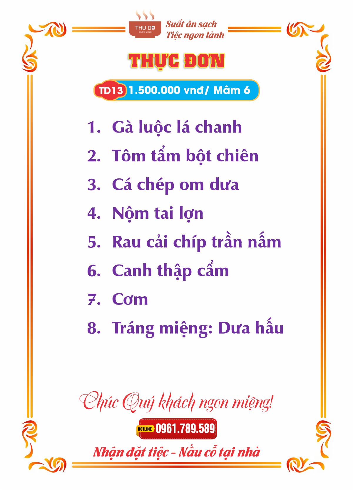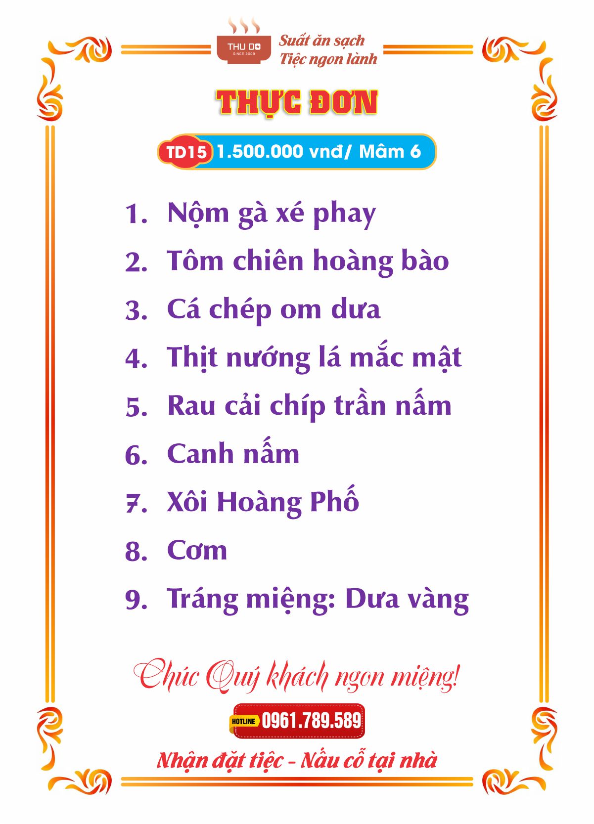 THỰC ĐƠN 1.500.000 vnđ / Mâm 6
