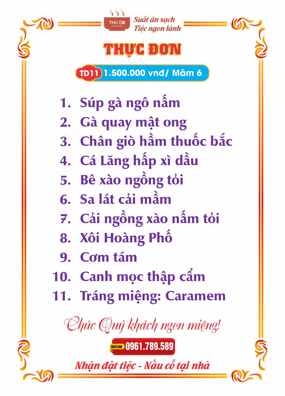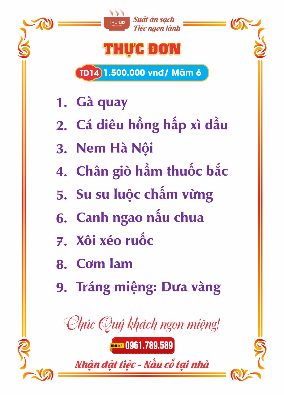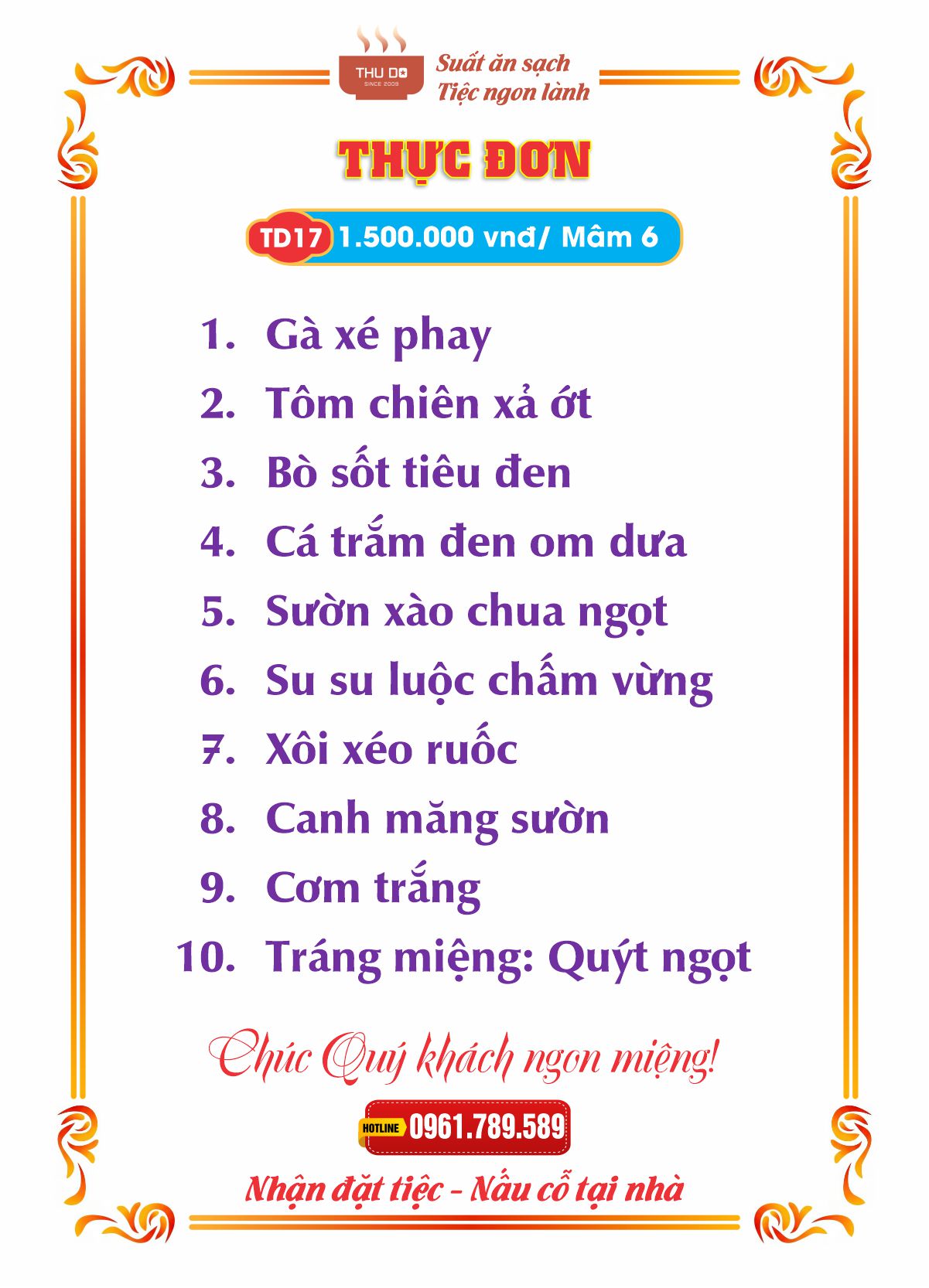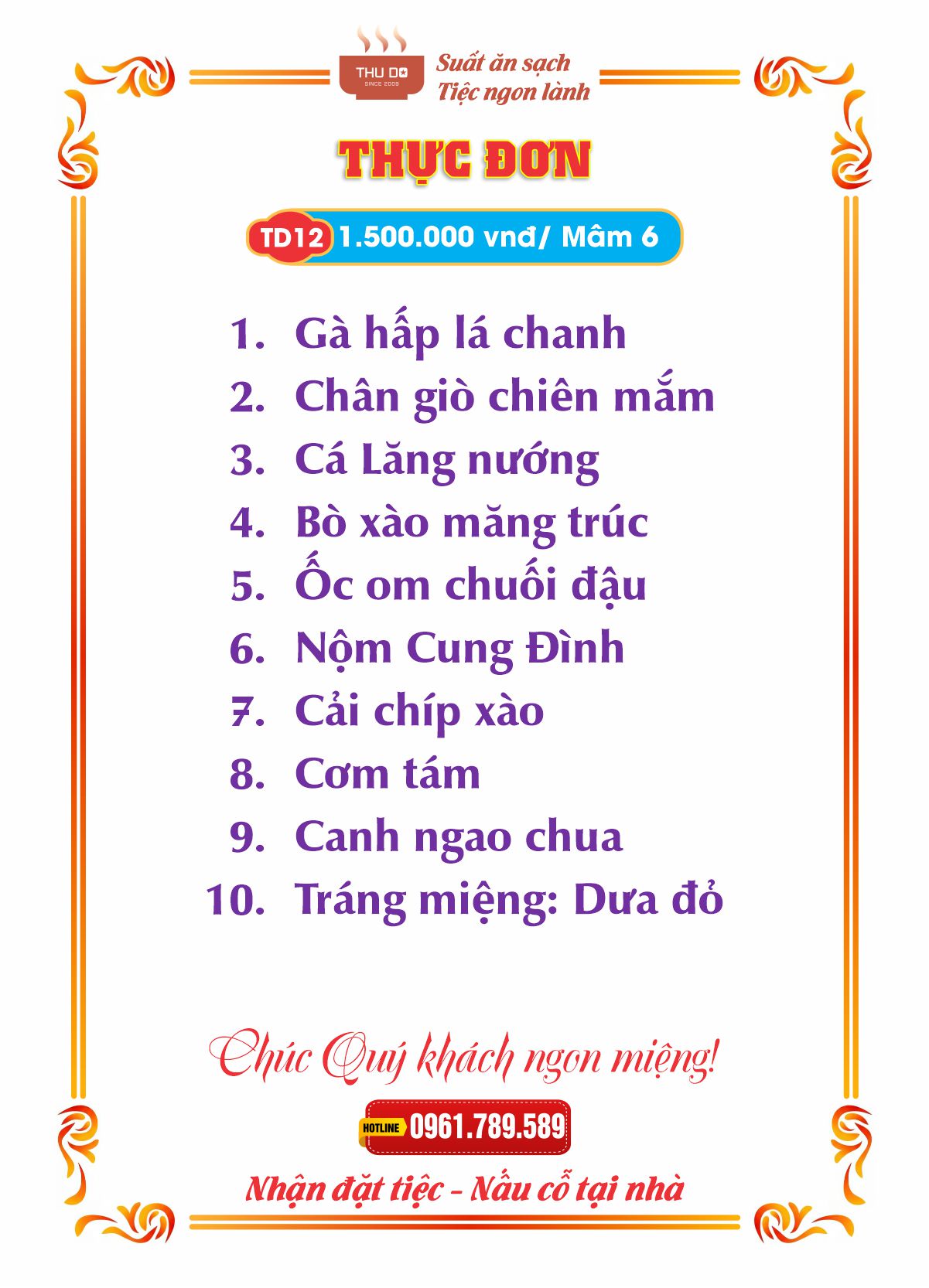 THỰC ĐƠN 1.500.000 vnđ / Mâm 6