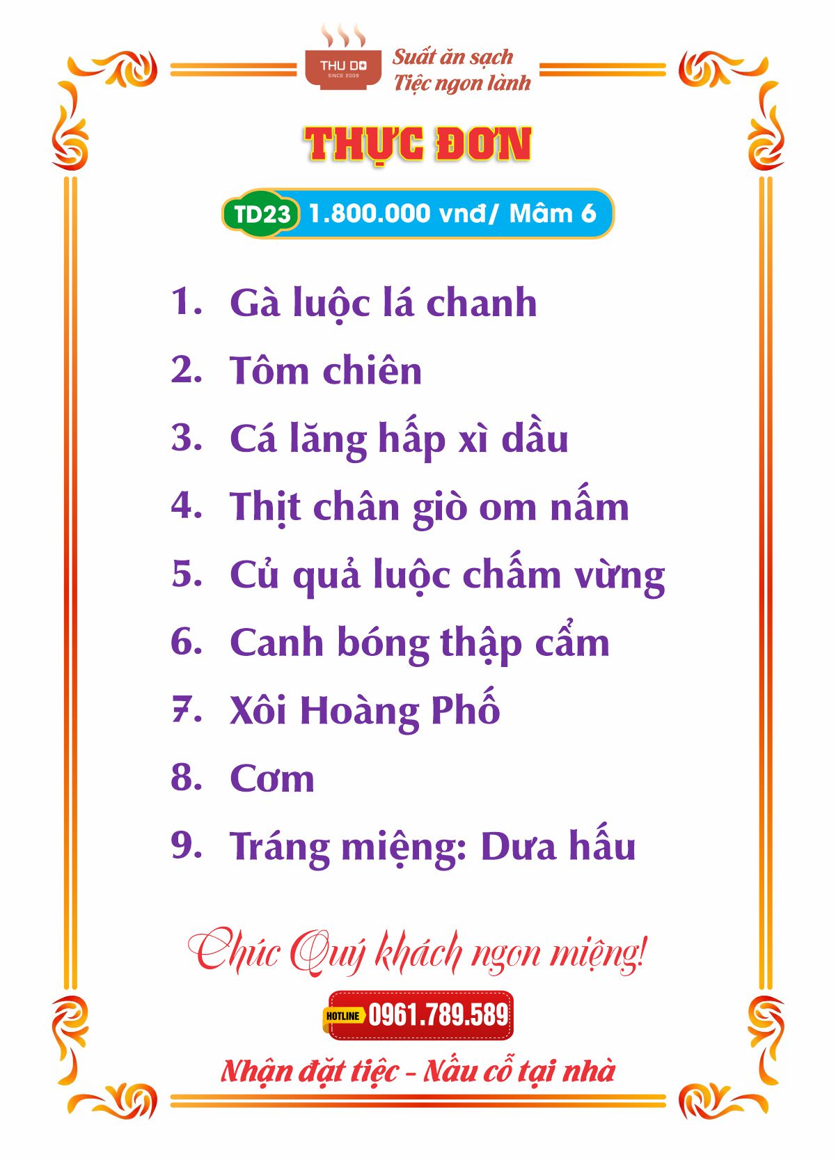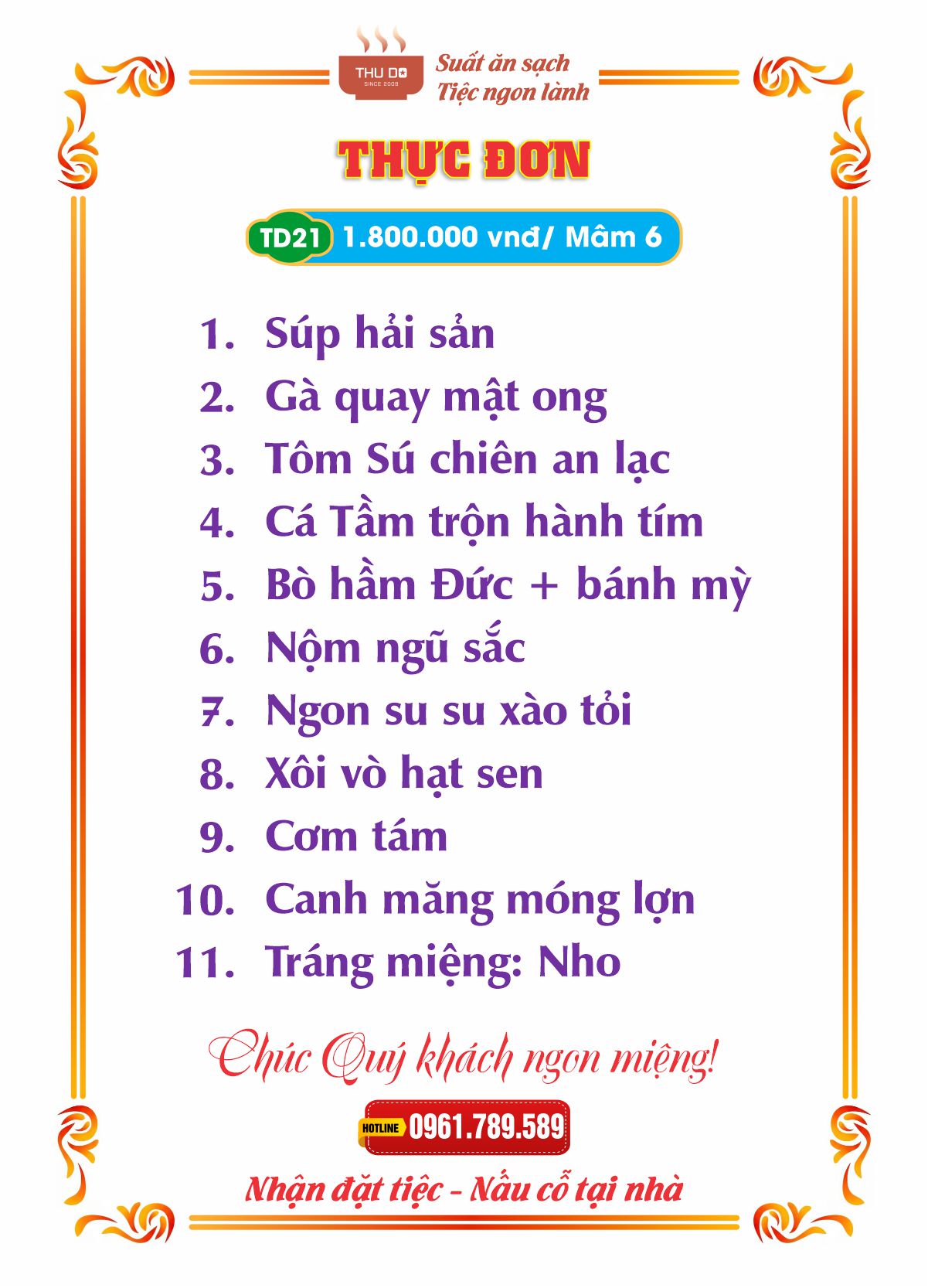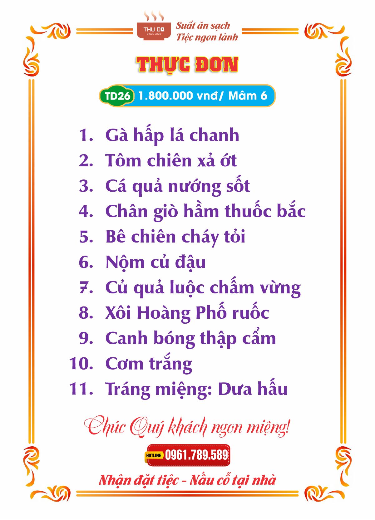 THỰC ĐƠN 1.800.000 vnđ / Mâm 6