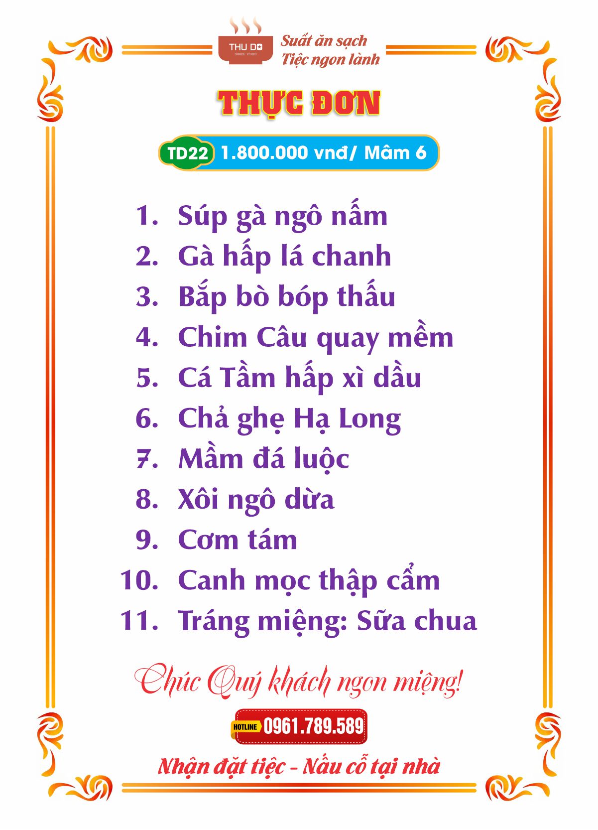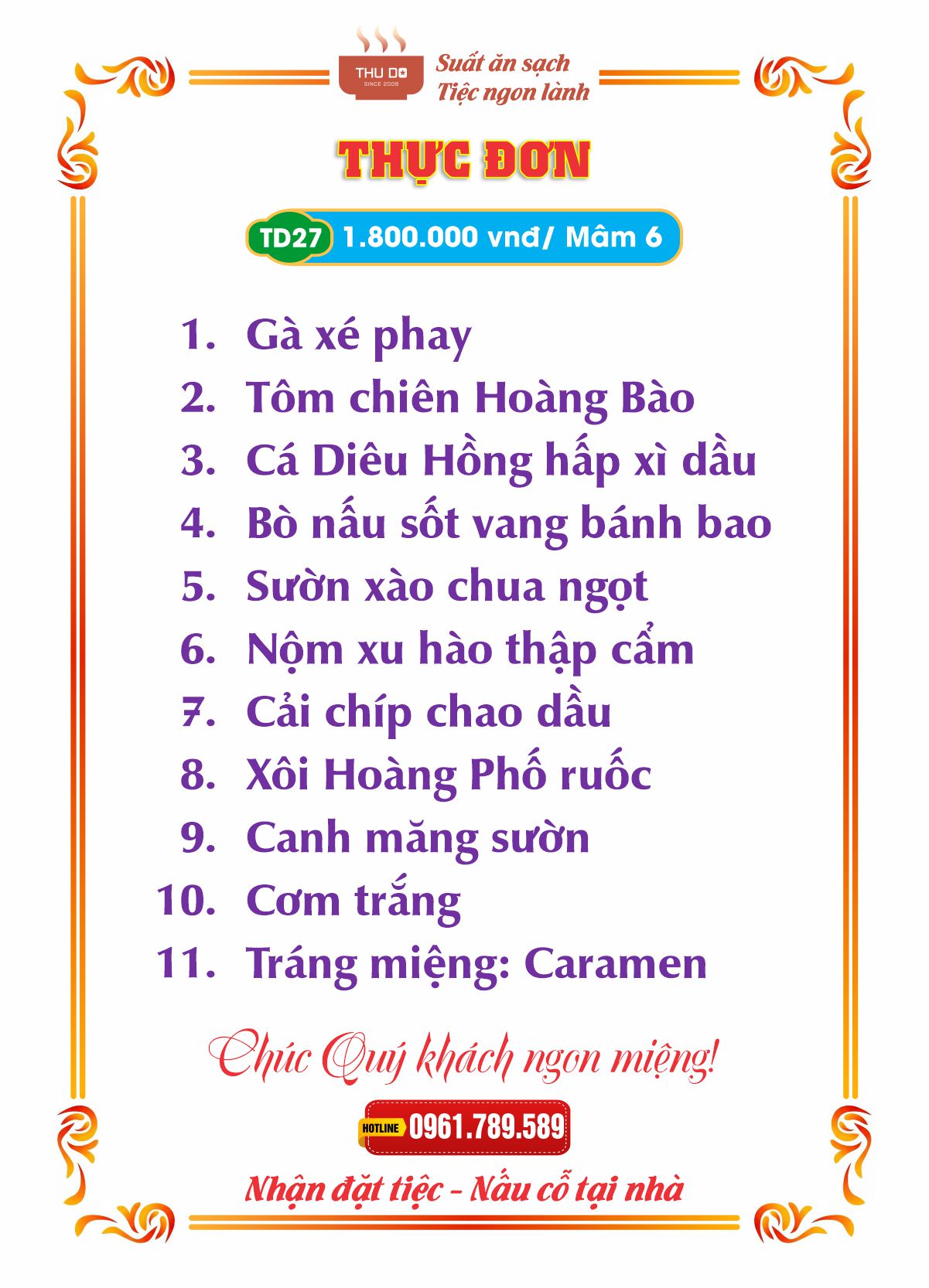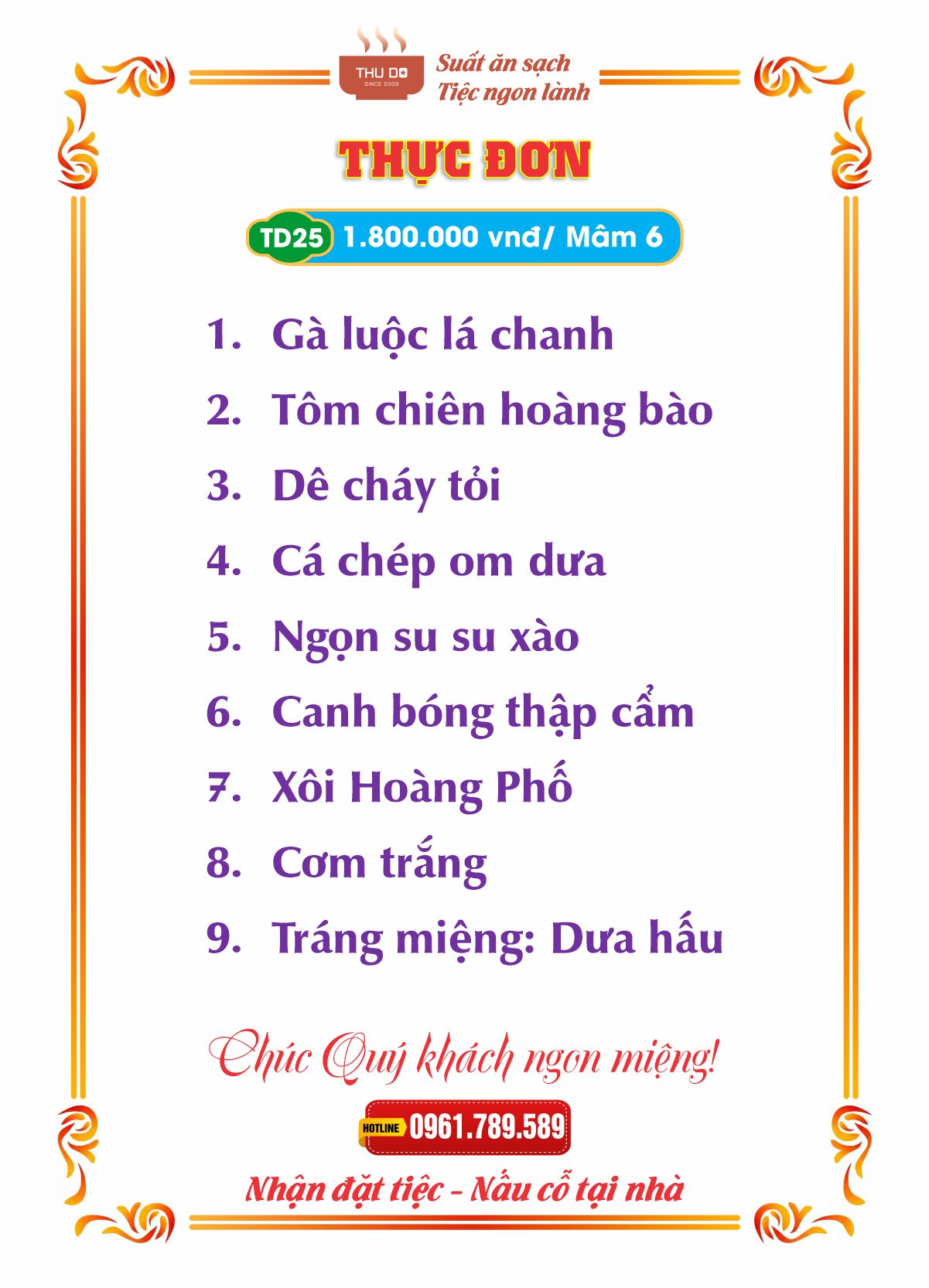 THỰC ĐƠN 1.800.000 vnđ / Mâm 6