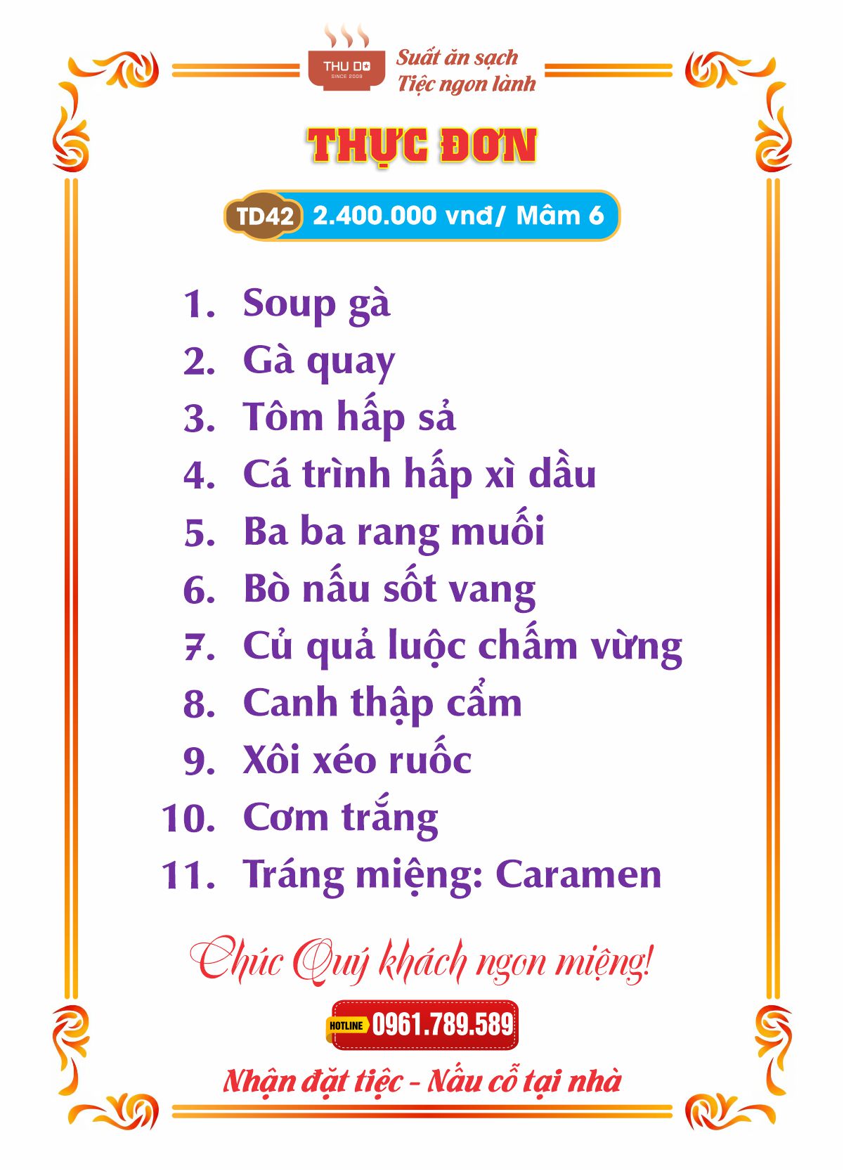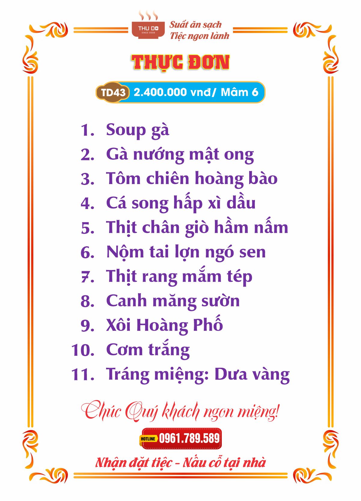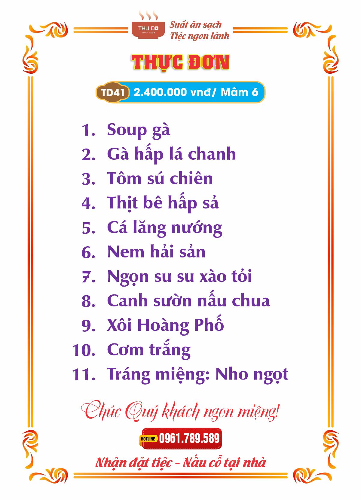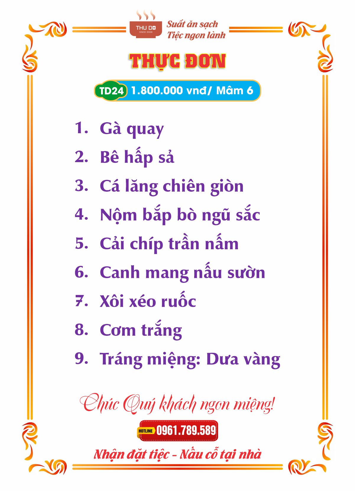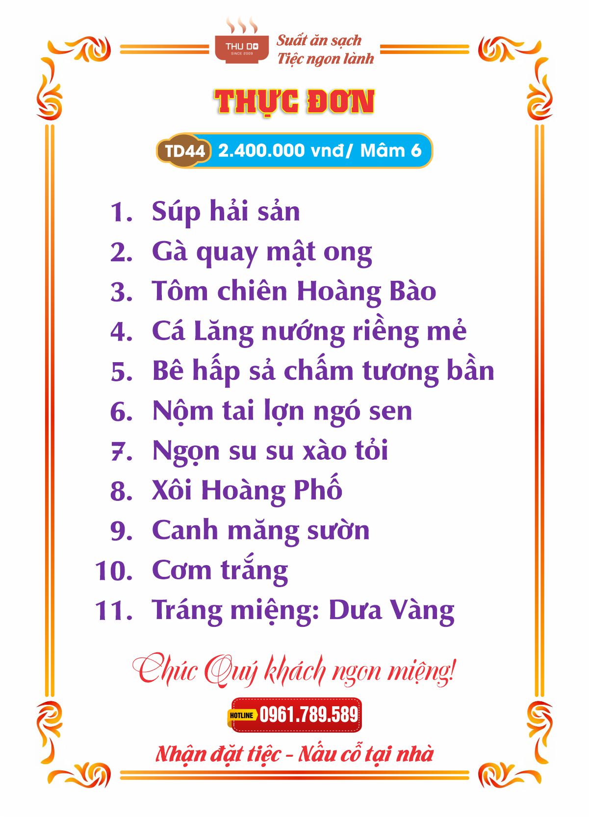 THỰC ĐƠN 2.400.000 vnđ / Mâm 6