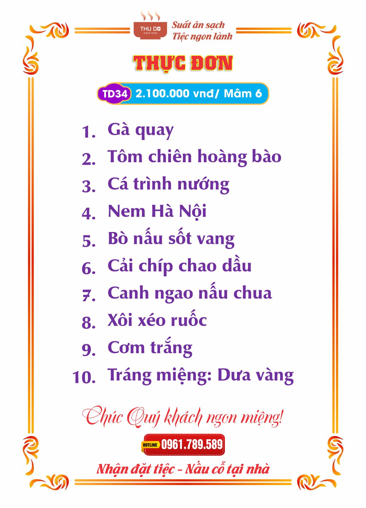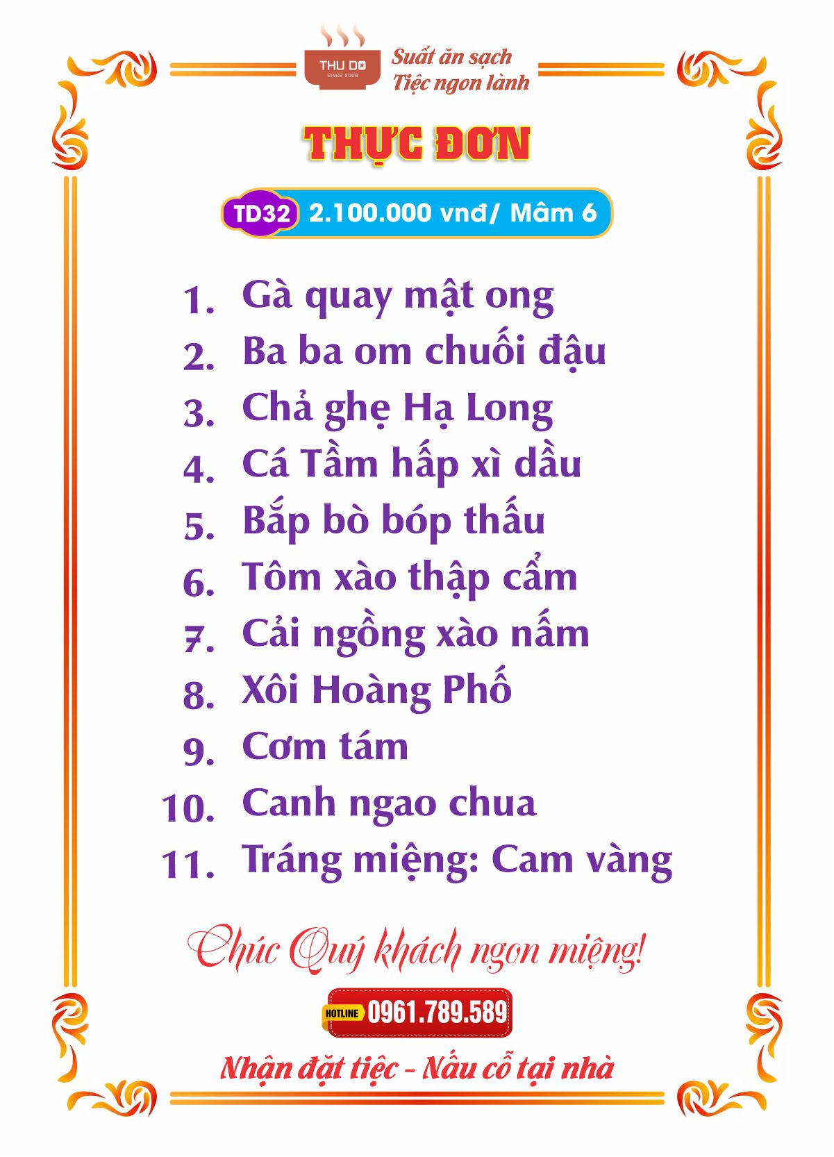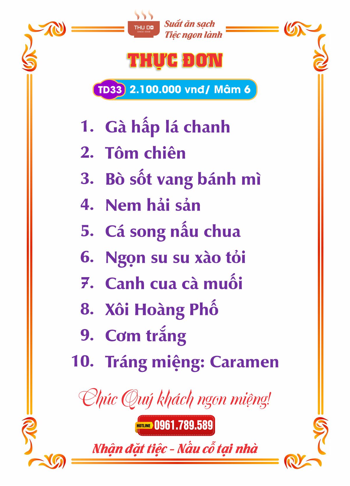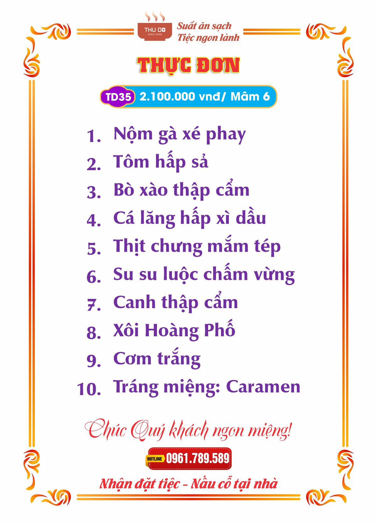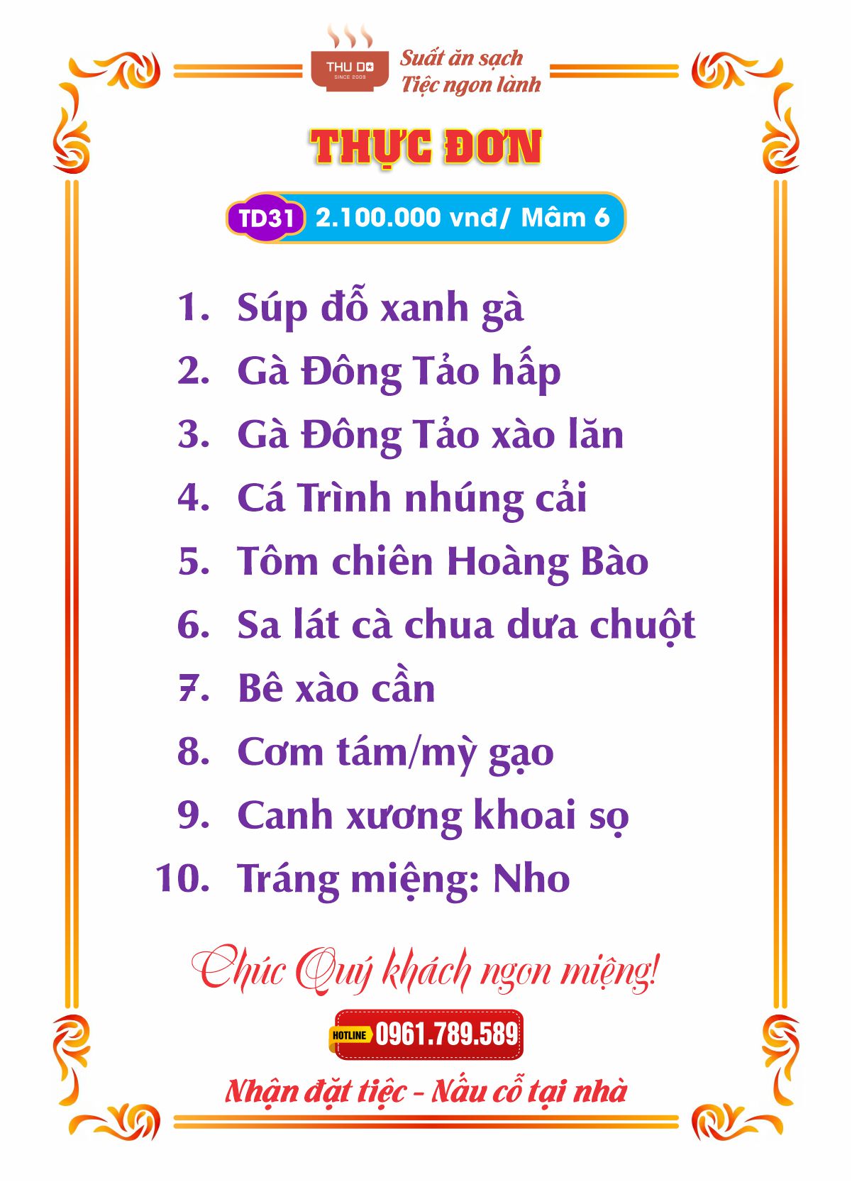 THỰC ĐƠN 2.100.000 vnđ / Mâm 6